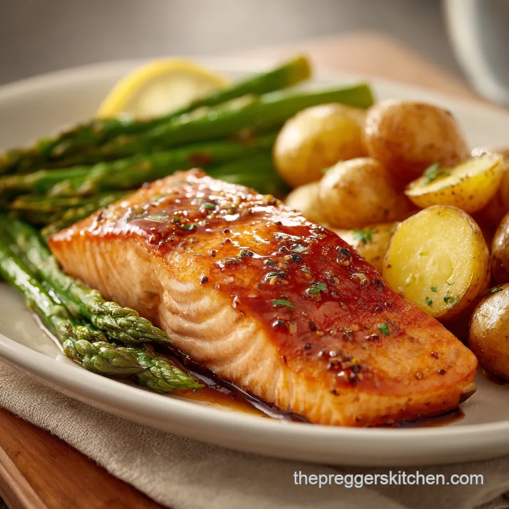 The salmon is the hero here, providing those critical omega-3 fatty acids that are so important for baby's brain development, while the asparagus and potatoes offer a balance of folate and complex carbohydrates to keep your energy stable.